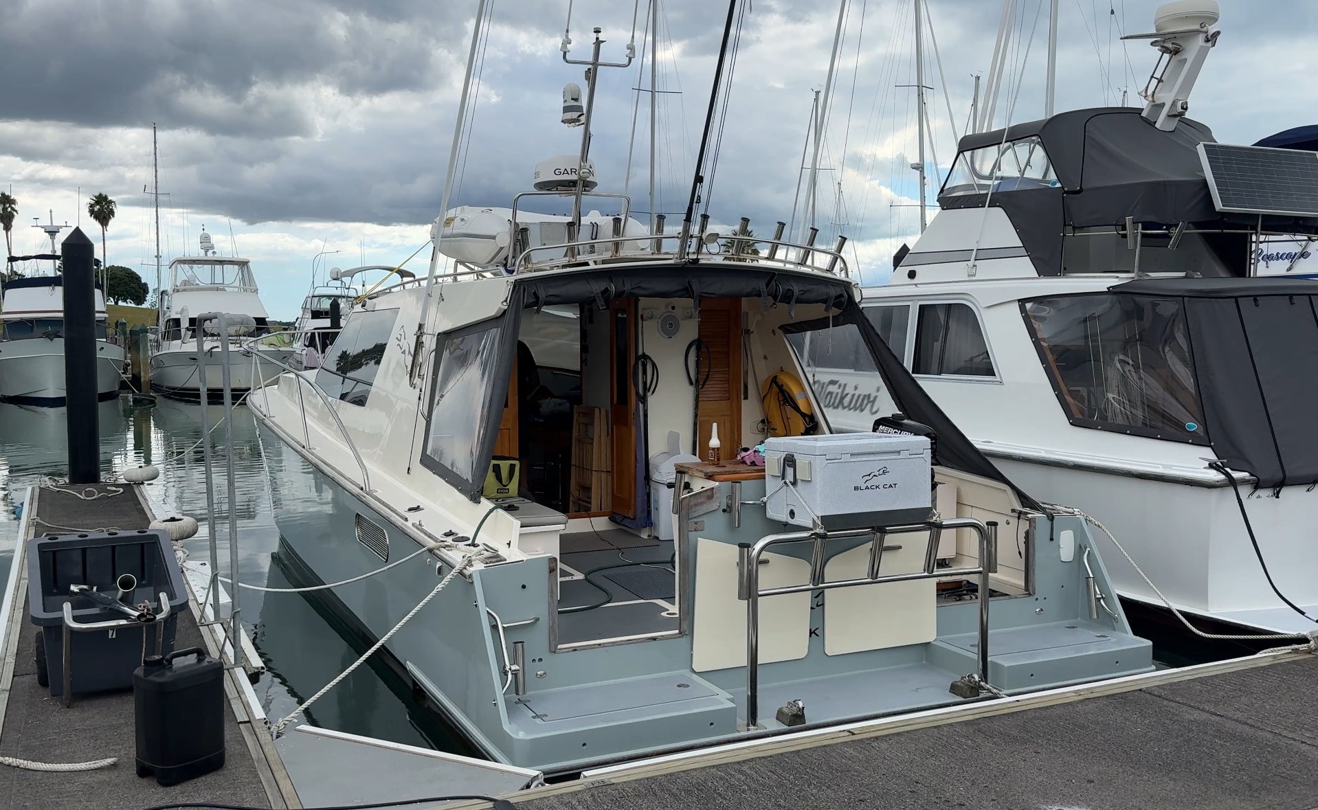 6'3 Heat room, 3 double, 2 single berths, Island bait station, dual transom doors, large Saloon.